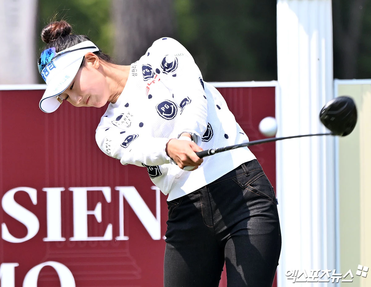 (엑스포츠뉴스 여주, 김한준 기자) 2일 경기도 여주 더 시에나 벨루토 컨트리클럽(파72·6586야드)에서 열린 KLPGA '더 시에나 오픈 2026' 1라운드 경기, 송지아가 1번홀 티샷을 준비하고 있다.