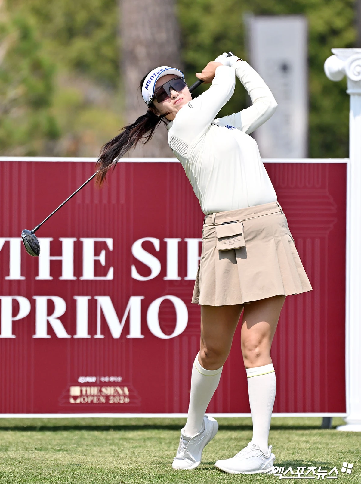 (엑스포츠뉴스 여주, 김한준 기자) 2일 경기도 여주 더 시에나 벨루토 컨트리클럽(파72·6586야드)에서 열린 KLPGA '더 시에나 오픈 2026' 1라운드 경기, 한진선이 1번홀 티샷을 날리고 있다.