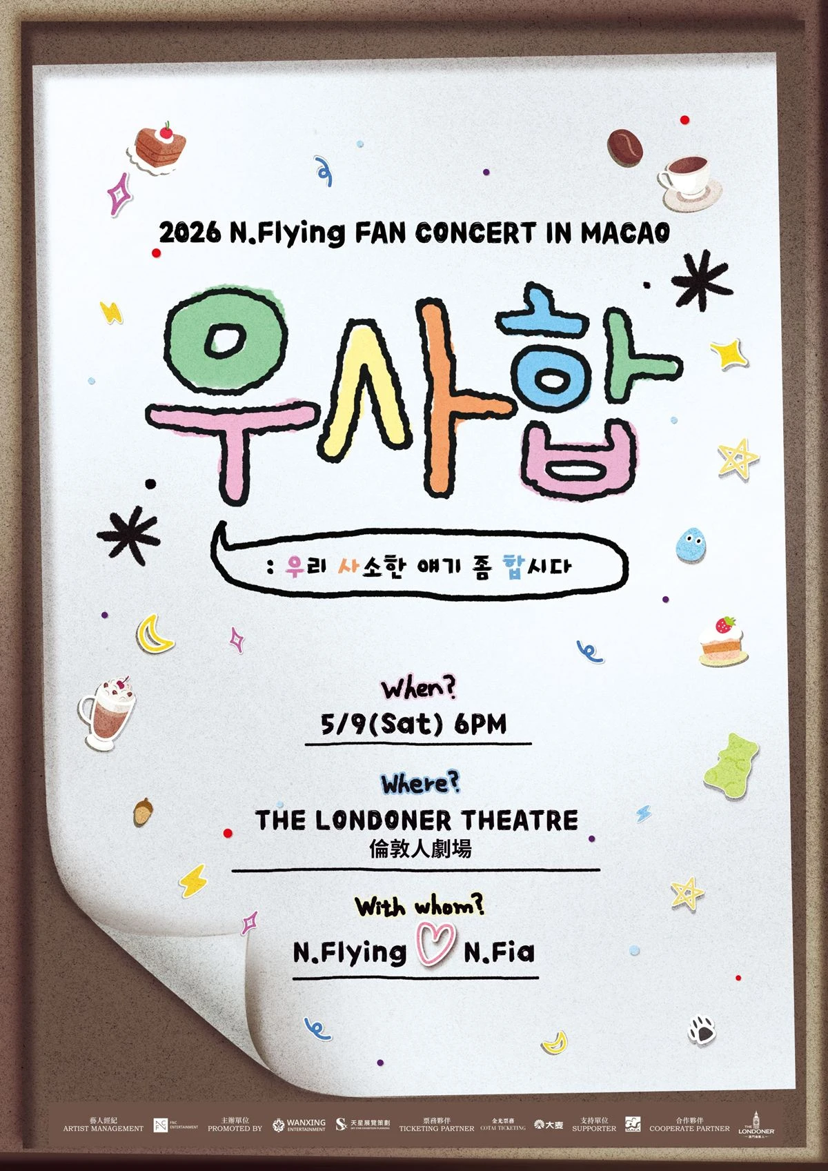엔플라잉은 오는 4월 11~12일 타이베이 NTU 스포츠 센터(NTU SPORTS CENTER), 5월 9일 마카오 더 런더너 시어터(THE LONDONER THEATRE)에서 2026 N.Flying FAN CONCERT ‘우.사.합 : 우리 사소한 얘기 좀 합시다’를 개최한다.