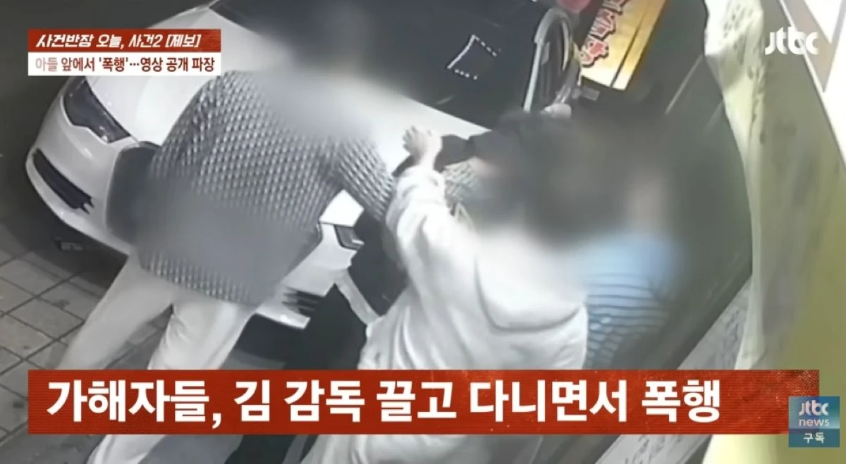 JTBC '사건반장'에서 공개된 CCTV에서는 김 감독이 어린 아들이 지켜보는 가운데 20대 남성들에게 폭행을 당했다. 20대 남성들이 김 감독을 구석으로 몰아넣은 뒤 얼굴을 가격하는 등 장면이 포착돼 충격을 자아냈다.