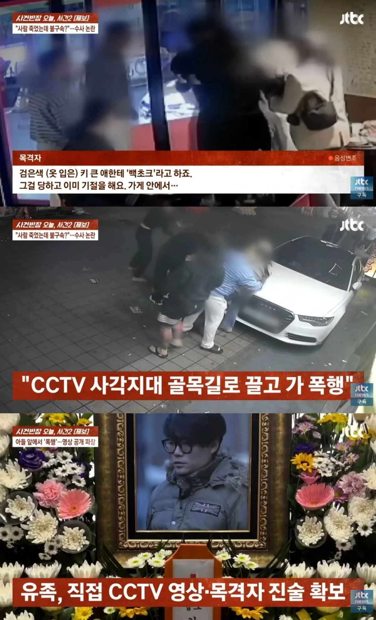 사건 목격자는 "피해자가 '백초크'를 당하고 기절했다. 밖에 나가서도 그만해달라는 제스처를 했는데, (가해자가) 그냥 주먹을 꽂았다"라고 증언했다.