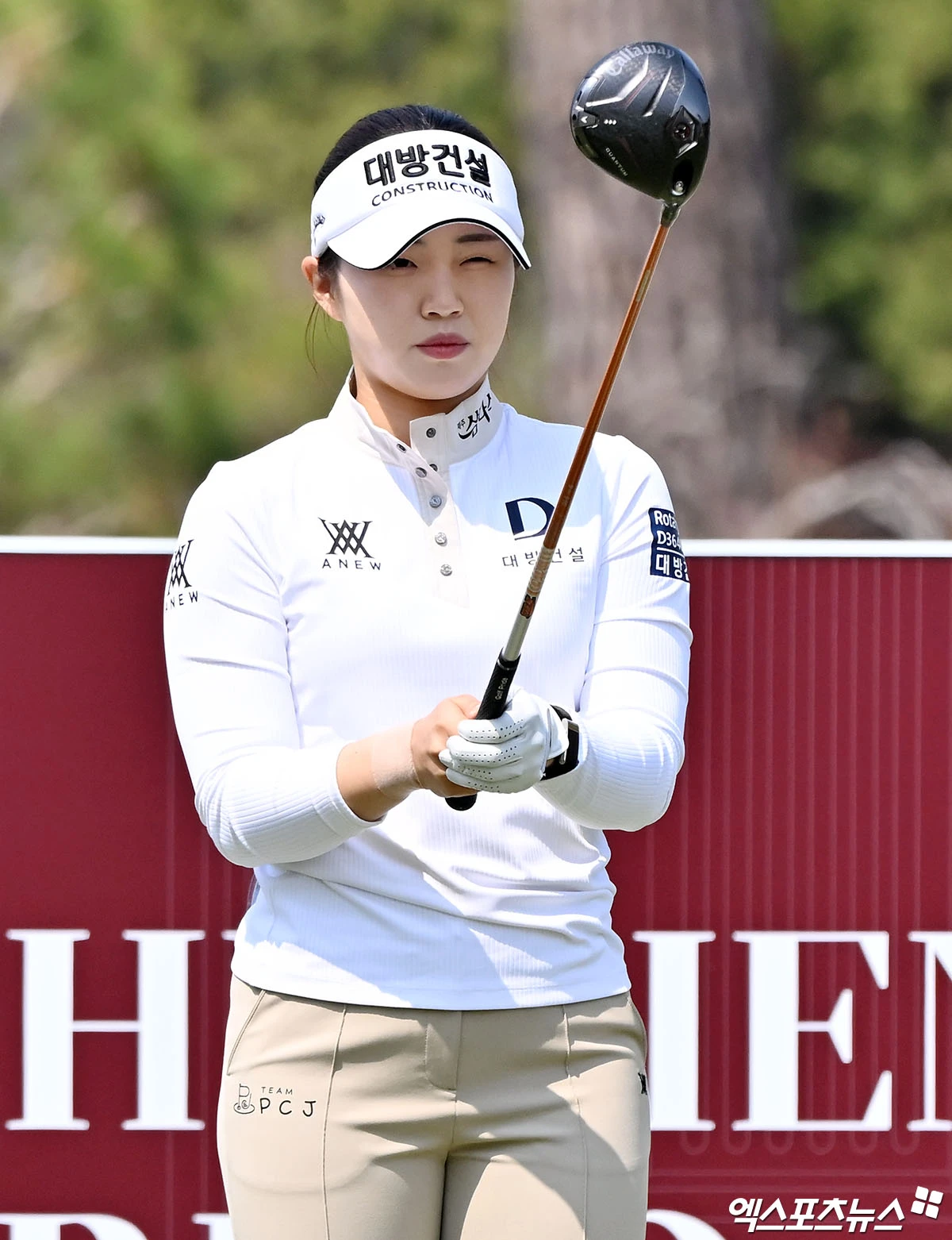 (엑스포츠뉴스 여주, 김한준 기자) 2일 경기도 여주 더 시에나 벨루토 컨트리클럽(파72·6586야드)에서 열린 KLPGA '더 시에나 오픈 2026' 1라운드 경기, 임진영 1번홀 티샷 전 에임을 하고 있다.