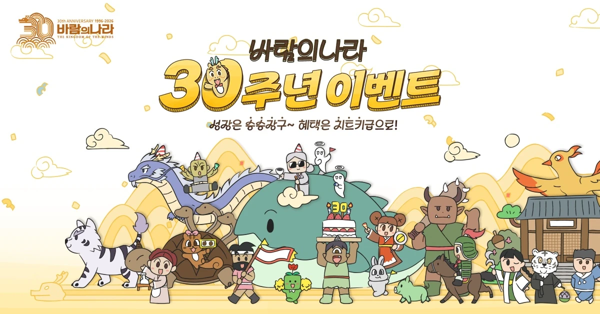 ‘바람의나라’ 서비스 30주년 업데이트 및 이벤트에 관한 자세한 내용은 공식 홈페이지에서 확인할 수 있다.