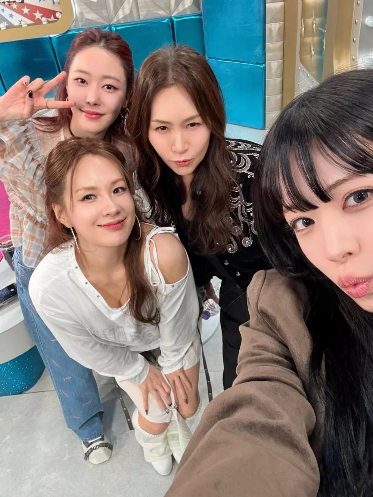 조갑경은 채연과 고우리 옆에 꼭 붙은 채 입술을 내미는 포즈를 취하는가 하면, 꽃받침 포즈로 후배들과 함께 셀카를 찍었다.