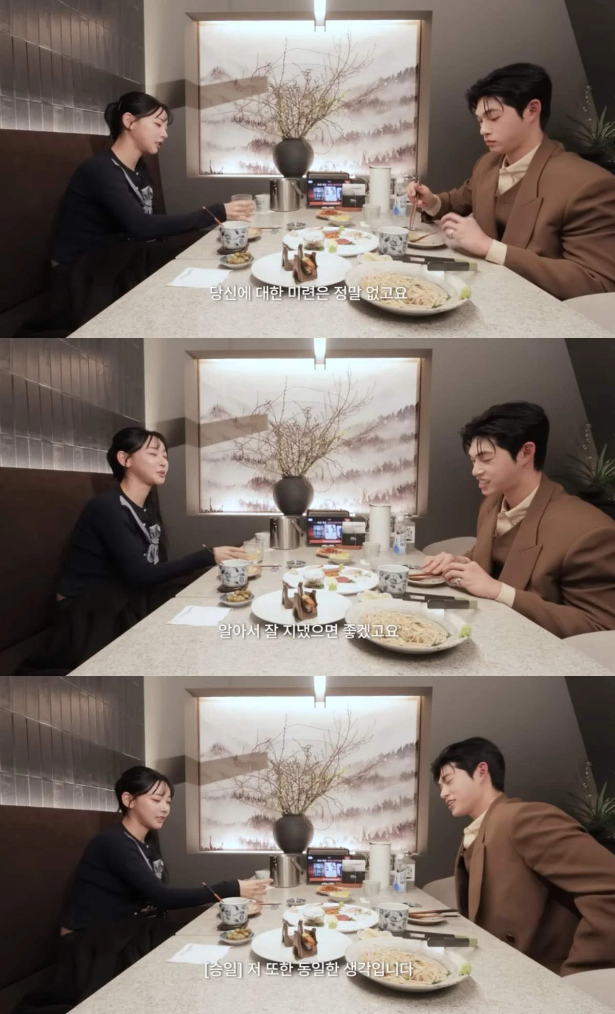 김민지는 이어 "당신에 대한 미련은 정말 없다. 알아서 잘 지냈으면 좋겠다"고 돌직구를 날렸다. 이에 송승일 또한 "저도 동일한 생각이다"라고 답했다.
