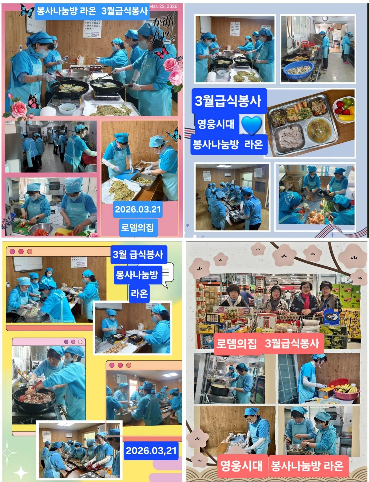 '라온'은 매달 '로뎀의집'에 급식비와 물품을 후원해 왔으며, 직접 주방 봉사에 나서 특식도 준비했다. 주요 식단으로는 불고기, 소고기배추된장국, 스팸두부전, 새우부추전, 버섯볶음, 어묵볶음 등을 준비했으며, 간식·식자재로는 한우 양지 11kg, 제철 과일(딸기, 샤인머스켓, 오렌지 등), 우유·음료수를 제공했다.