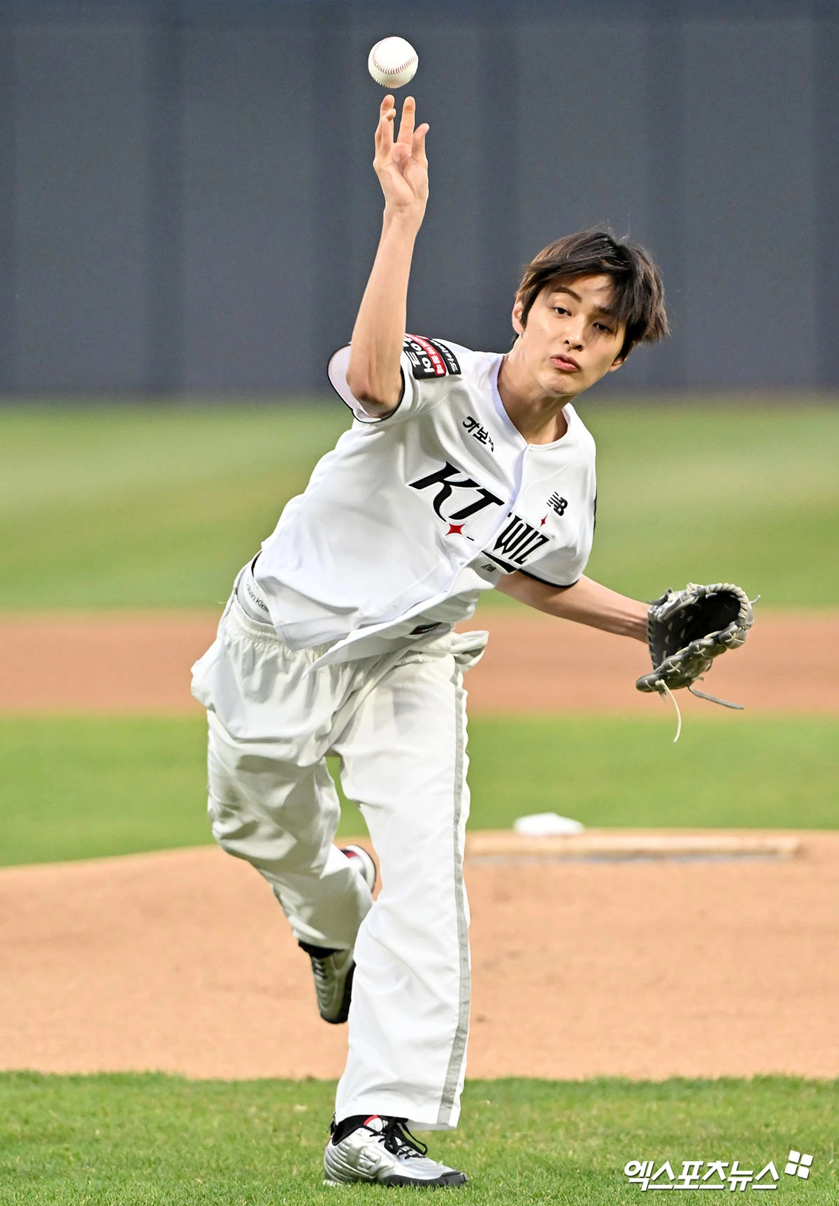 (엑스포츠뉴스 수원, 김한준 기자) 3일 오후 수원KT위즈파크에서 열린 '2026 신한 SOL Bank KBO리그' 삼성 라이온즈와 KT 위즈의 경기, 경기 전 그룹 코르티스 건호가 시구에 임하고 있다.