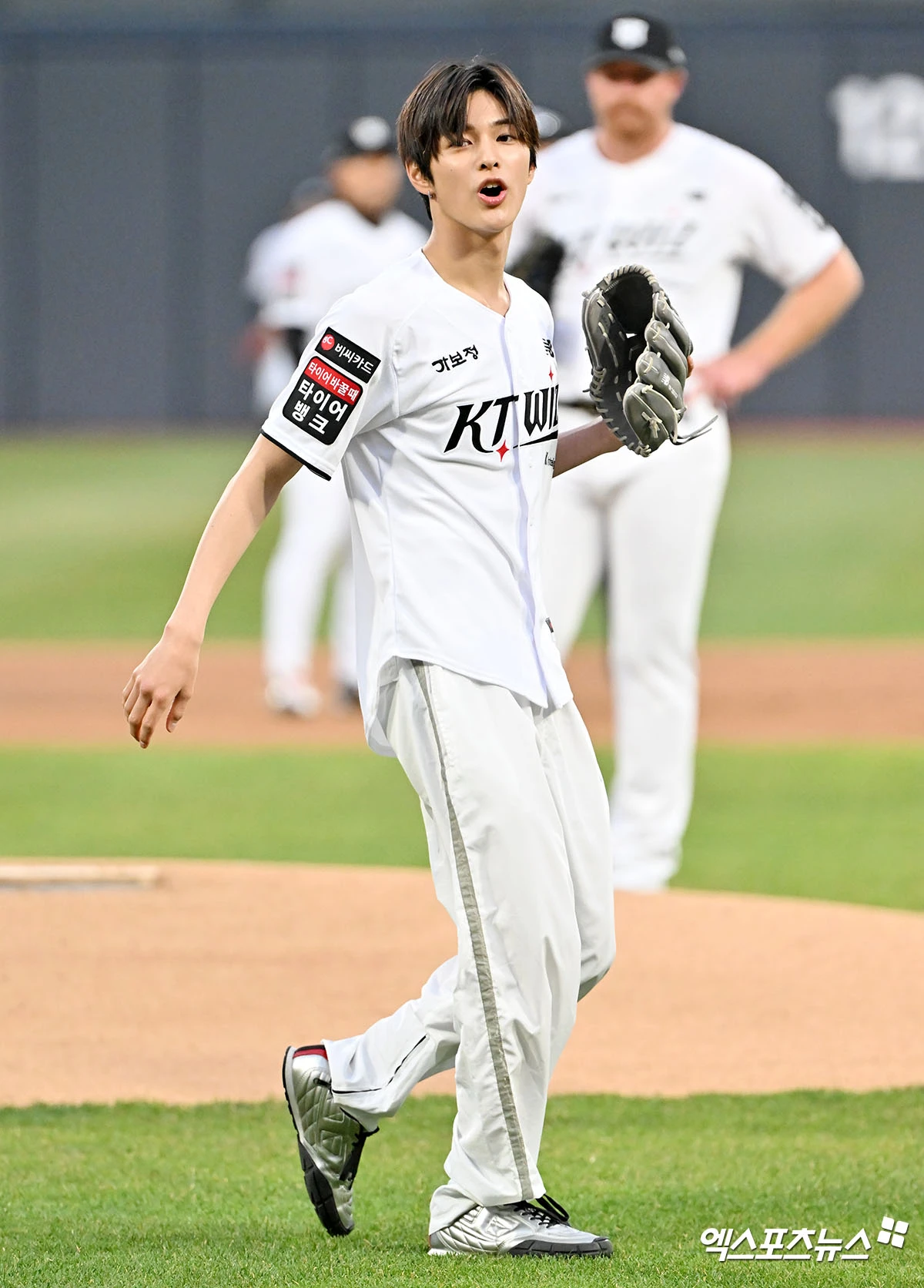 (엑스포츠뉴스 수원, 김한준 기자) 3일 오후 수원KT위즈파크에서 열린 '2026 신한 SOL Bank KBO리그' 삼성 라이온즈와 KT 위즈의 경기, 경기 전 그룹 코르티스 건호가 시구에 임하고 있다.