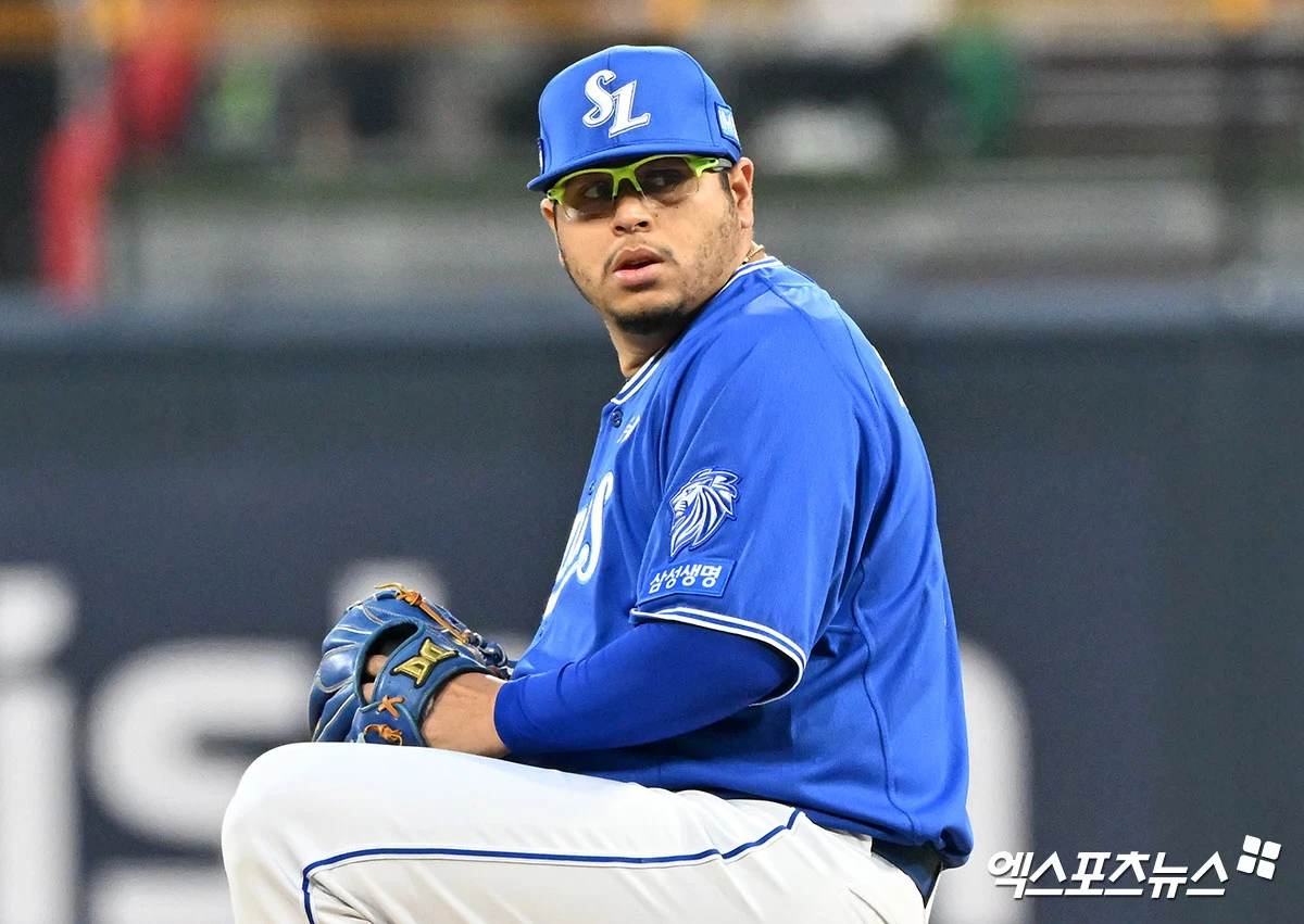 (엑스포츠뉴스 수원, 김한준 기자) 3일 오후 수원KT위즈파크에서 열린 '2026 신한 SOL Bank KBO리그' 삼성 라이온즈와 KT 위즈의 경기, 1회말 삼성 선발투수 후라도가 공을 힘차게 던지고 있다.