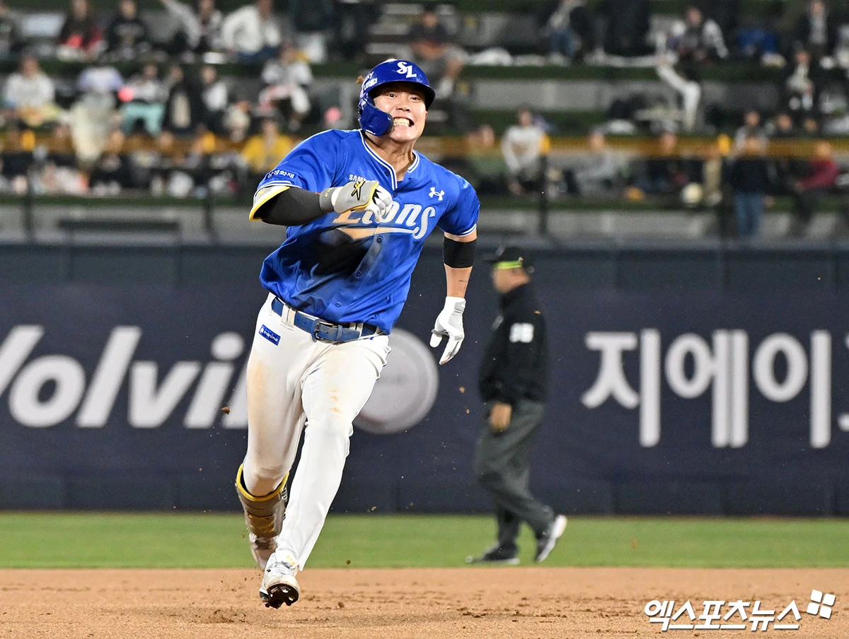 (엑스포츠뉴스 수원, 김한준 기자) 3일 오후 수원KT위즈파크에서 열린 '2026 신한 SOL Bank KBO리그' 삼성 라이온즈와 KT 위즈의 경기, 6회초 2사 2루 삼성 류지혁이 1타점 3루타를 날리고 있다.