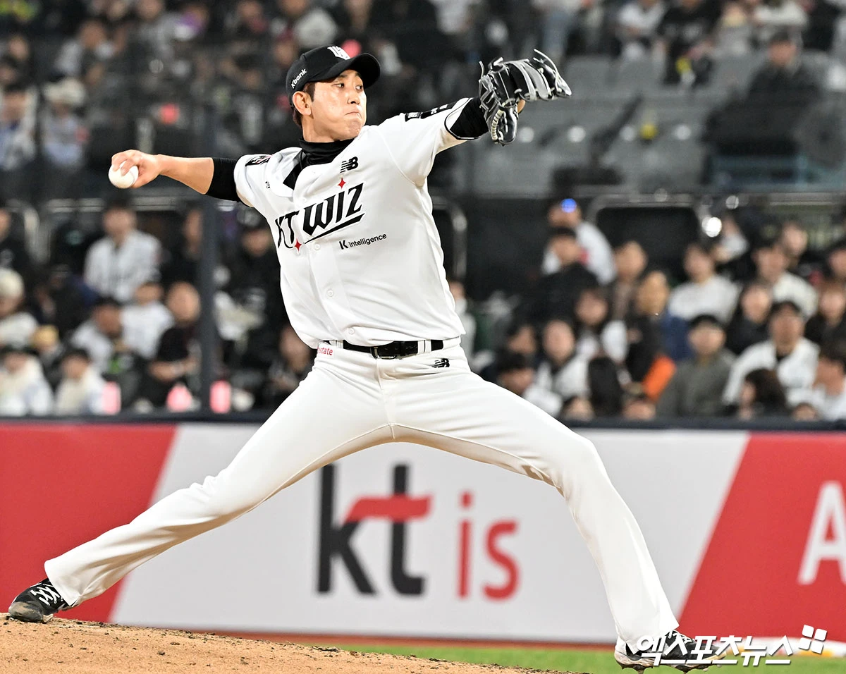 (엑스포츠뉴스 수원, 김한준 기자) 3일 오후 수원KT위즈파크에서 열린 '2026 신한 SOL Bank KBO리그' 삼성 라이온즈와 KT 위즈의 경기, 7회초 KT 김민수가 공을 힘차게 던지고 있다.