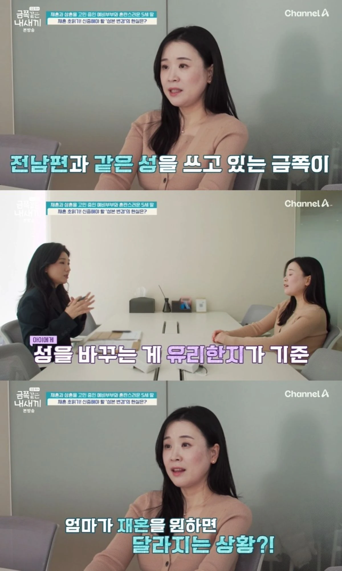 현숙은 "제 딸이 A씨인데, 제가 B씨다. 전 남편 성씨가 A씨여서 너무 싫은 거다. 그래서 금쪽이 성을 제 성으로 바꾸고 싶다"고 말했다. 이혼 후 엄마 성본으로 변경을 원한다는 것.