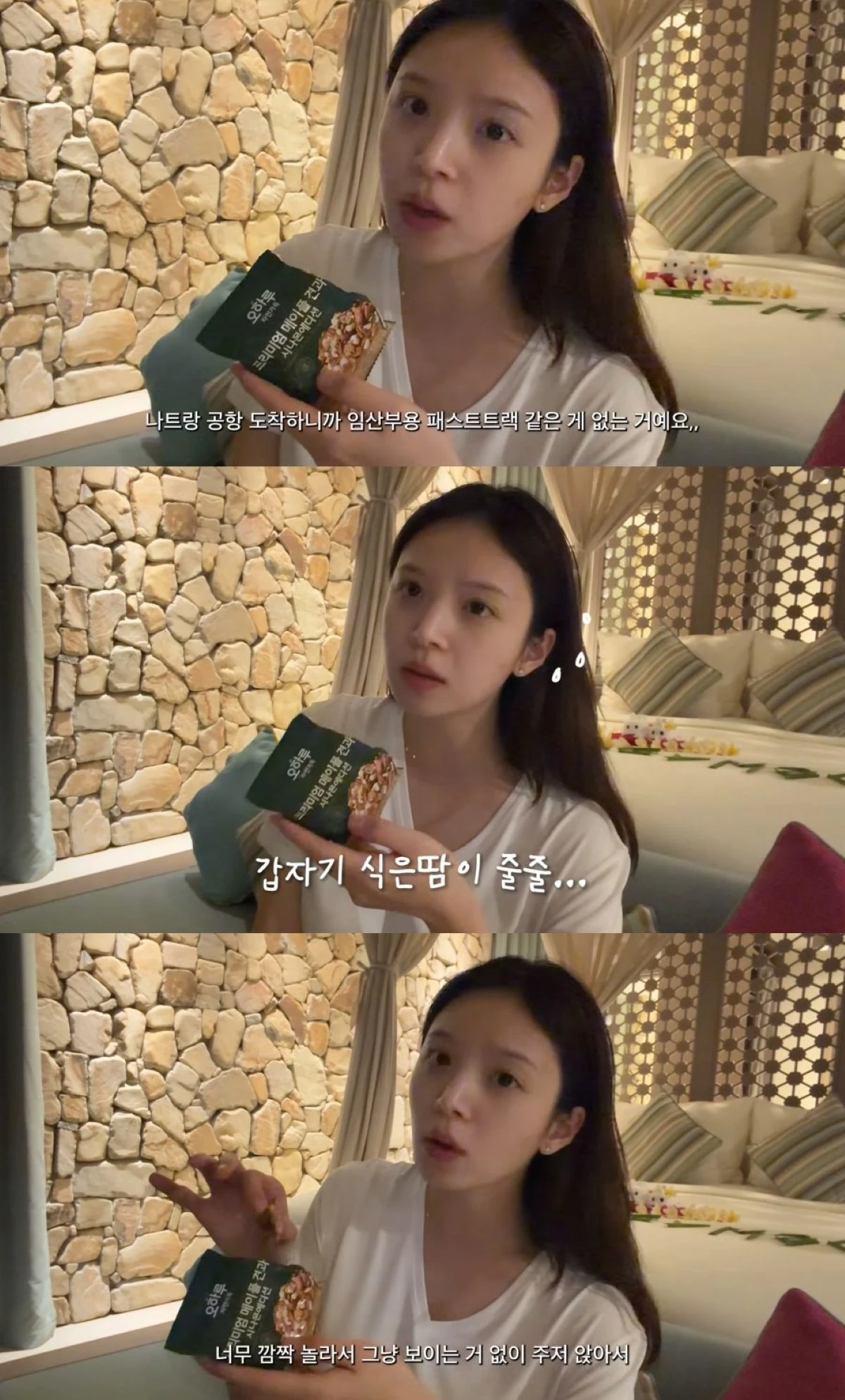 나트랑에 도착한 김지영은 "나트랑 공항 도착하니까 임산부용 패스트트랙이 없더라. 그 줄이 길었는데 다 기다렸다"고 토로했다.