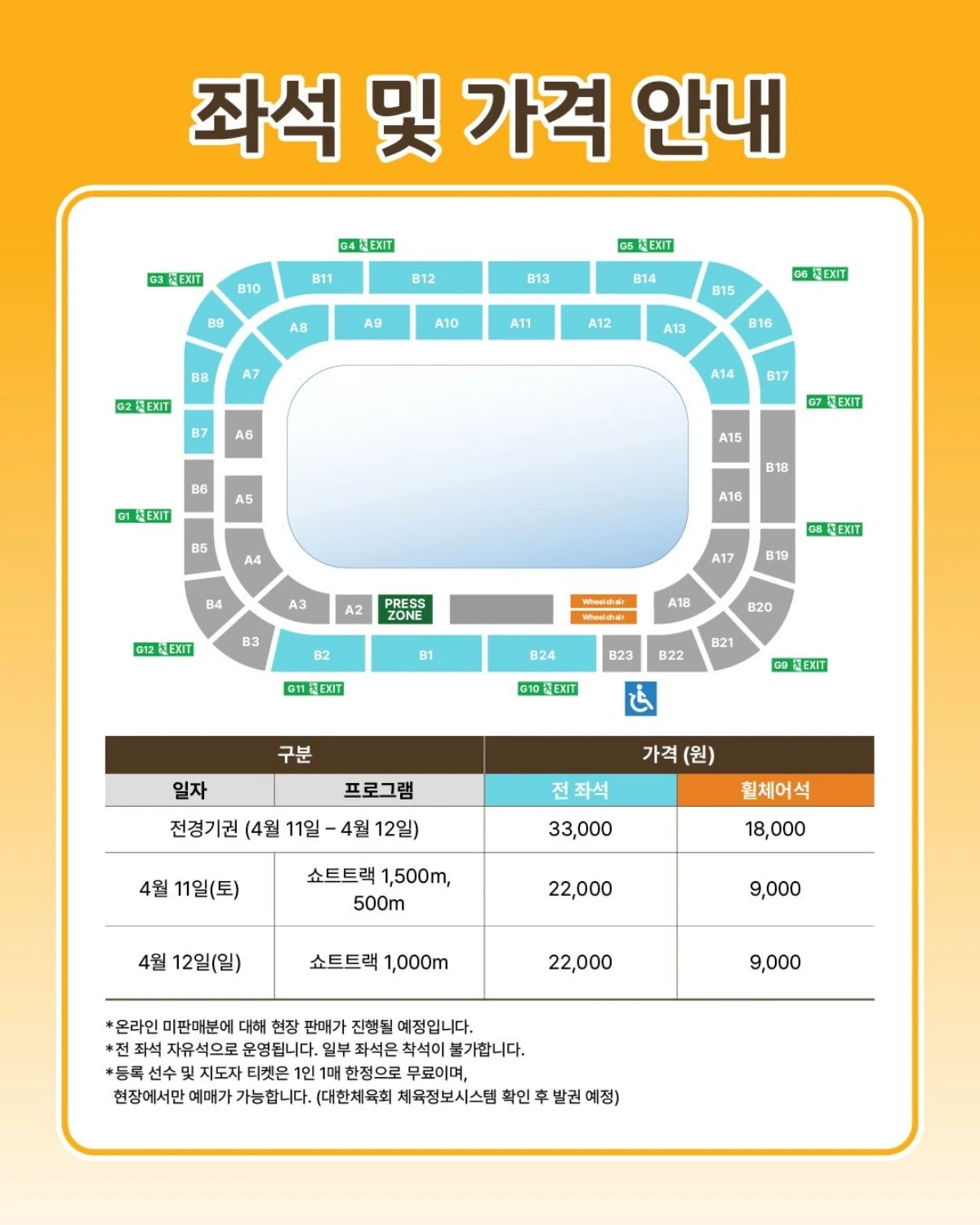 대한빙상경기연맹은 2차 선발전에 유료 티켓 판매를 결정했다. 연맹은 전경기권 3만3000원, 일일권은 2만200원의 티켓 가격을 매겼다.