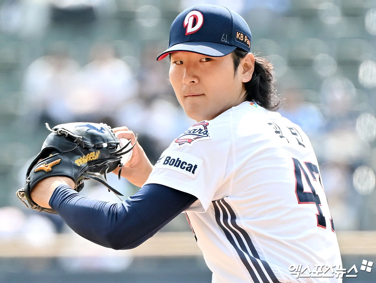 (엑스포츠뉴스 잠실, 김한준 기자) 4일 오후 서울 송파구 잠실야구장에서 열린 '2026 신한 SOL Bank KBO리그' 한화 이글스와 두산 베어스의 경기,1회초 두산 선발투수 곽빈이 공을 힘차게 던지고 있다.