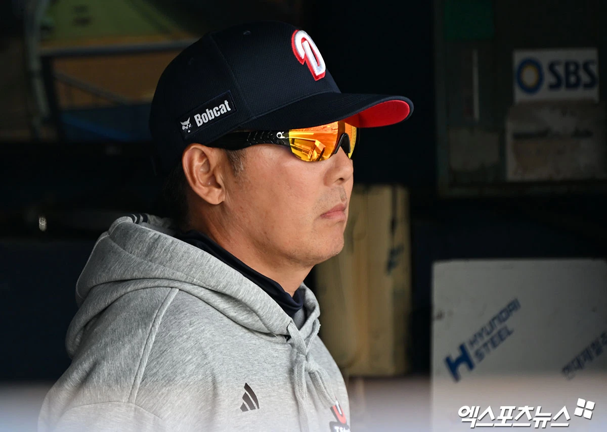 (엑스포츠뉴스 잠실, 김한준 기자) 4일 오후 서울 송파구 잠실야구장에서 열린 '2026 신한 SOL Bank KBO리그' 한화 이글스와 두산 베어스의 경기, 두산 김원형 감독이 경기를 지켜보고 있다.