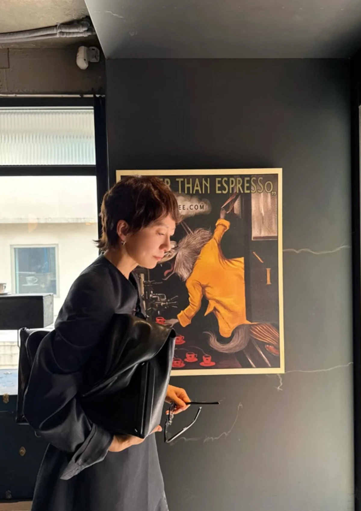 공개된 사진 속 김희애는 블랙 셋업 스타일링으로 세련된 분위기를 자아내며, 카페 창가에 앉아 여유로운 시간을 보내고 있다. 특히 자연광을 받은 모습은 한층 더 깊어진 분위기를 완성한다.
