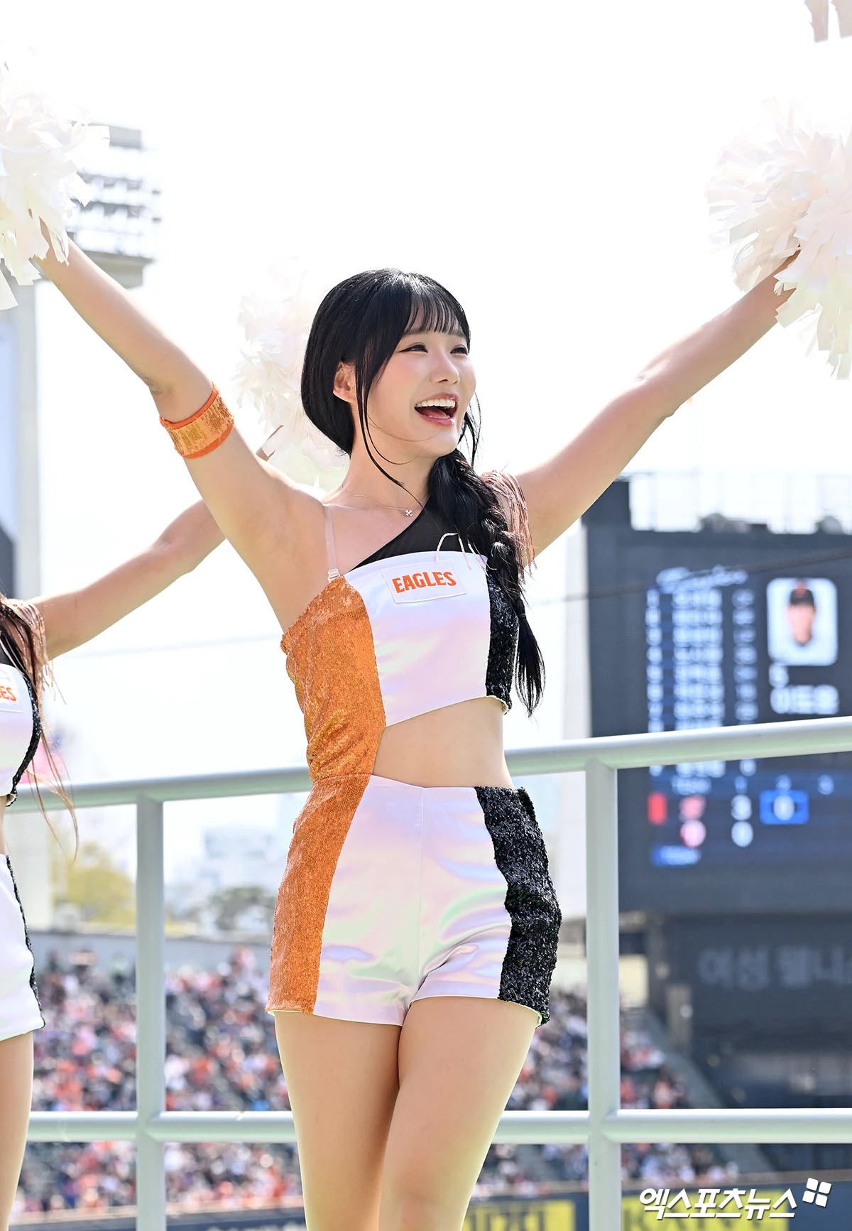 (엑스포츠뉴스 잠실, 김한준 기자) 4일 오후 서울 송파구 잠실야구장에서 열린 '2026 신한 SOL Bank KBO리그' 한화 이글스와 두산 베어스의 경기, 최홍라 치어리더가 열띤 응원을 선보이고 있다.