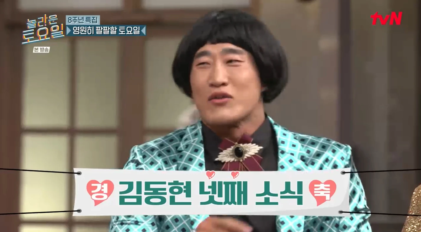 이어 김동현은 "놀토 8주년이지 않나. 저희 집에 넷째가 생겼다"며 "처음 얘기하는 건데 놀토 8주년과 함께 아이가 4명이 됐다"고 덧붙여 많은 축하를 받았다.