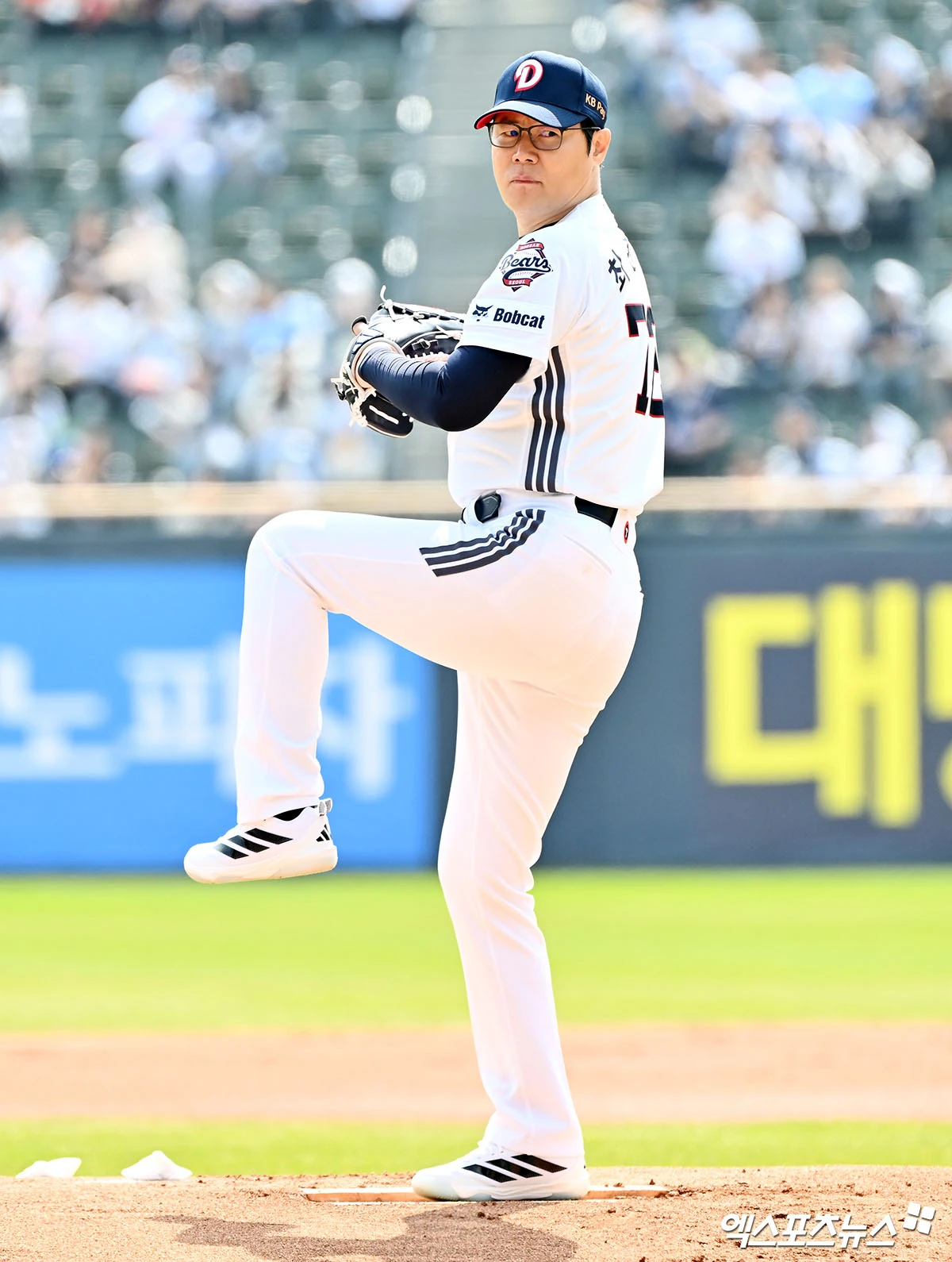 (엑스포츠뉴스 잠실, 김한준 기자) 4일 오후 서울 송파구 잠실야구장에서 열린 '2026 신한 SOL Bank KBO리그' 한화 이글스와 두산 베어스의 경기, 경기 전 셰프 최현석이 시구에 임하고 있다.