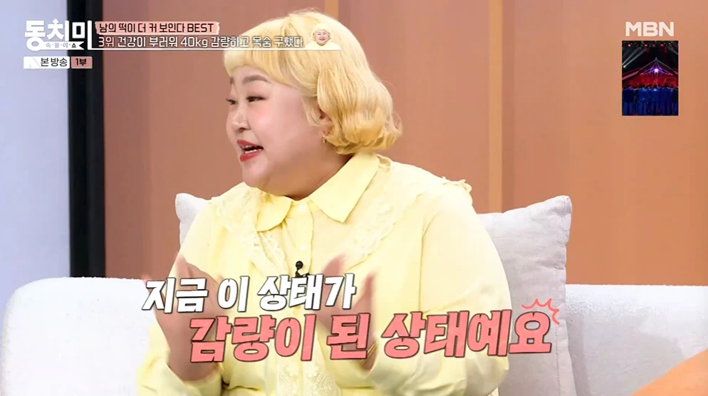 4일 방송된 MBN '속풀이쇼 동치미'에서는 홍윤화가 40kg 감량 전후 사진을 공개했다.