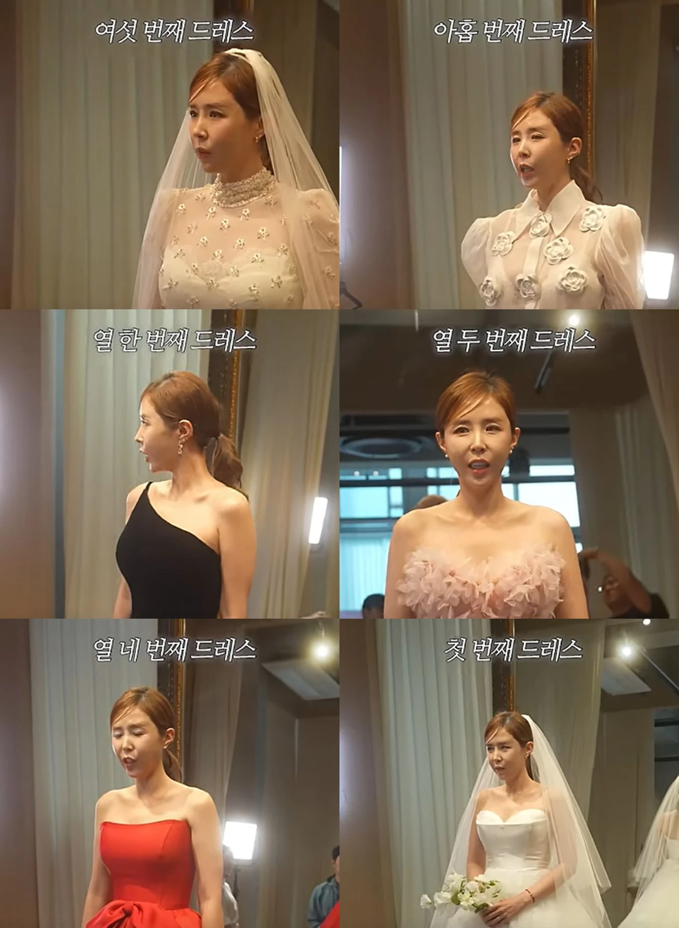 더불어 신지는 어깨가 드러나는 디자인부터 클래식한 매력이 묻어나는 디자인의 드레스, 화려한 프릴 디자인의 드레스까지 모두 착용해봐 눈길을 끌었다.