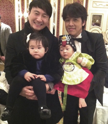 사진 속 주영훈은 류시원은 각자 딸을 안고 나란히 서 있어 눈길을 끈다 .