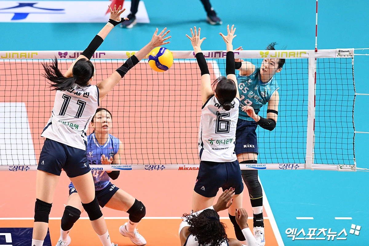 (엑스포츠뉴스 장충, 고아라 기자) 5일 오후 서울 장충체육관에서 열린 '진에어 2025-2026 V-리그' 포스트시즌 여자부 챔피언결정전 GS칼텍스와 한국도로공사 경기, GS칼텍스 유서연이 공격을 시도하고 있다.