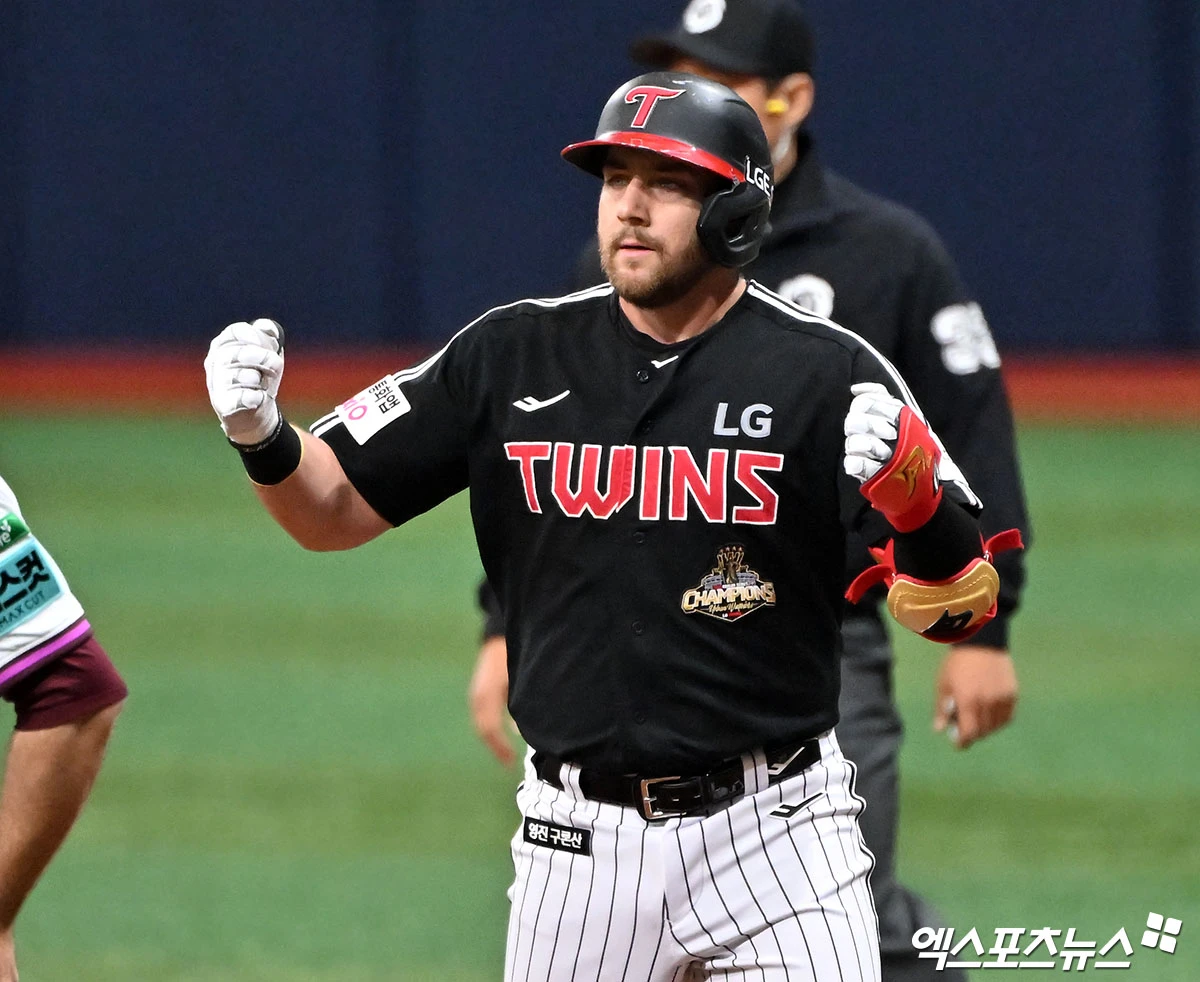 (엑스포츠뉴스 고척, 김한준 기자) 5일 오후 서울 구로구 고척스카이돔에서 열린 '2026 신한 SOL Bank KBO리그' LG 트윈스와 키움 히어로즈의 경기, 1회초 1사 1루 LG 오스틴이 좌전안타를 날리고 있다.