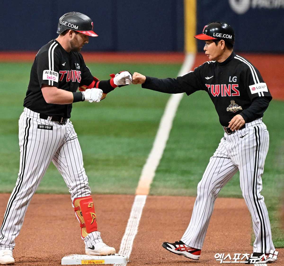 (엑스포츠뉴스 고척, 김한준 기자) 5일 오후 서울 구로구 고척스카이돔에서 열린 '2026 신한 SOL Bank KBO리그' LG 트윈스와 키움 히어로즈의 경기, 1회초 1사 1루 LG 오스틴이 좌전안타를 날리고 있다.