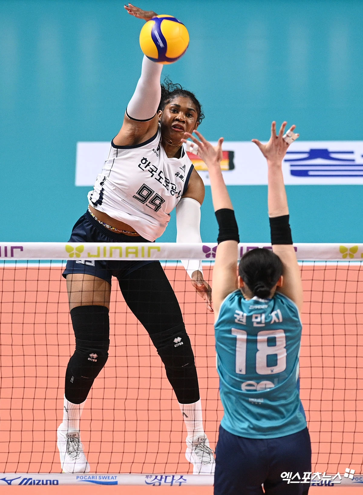 (엑스포츠뉴스 장충, 고아라 기자) 5일 오후 서울 장충체육관에서 열린 '진에어 2025-2026 V-리그' 포스트시즌 여자부 챔피언결정전 GS칼텍스와 한국도로공사 경기, 한국도로공사 모마가 공격을 시도하고 있다.