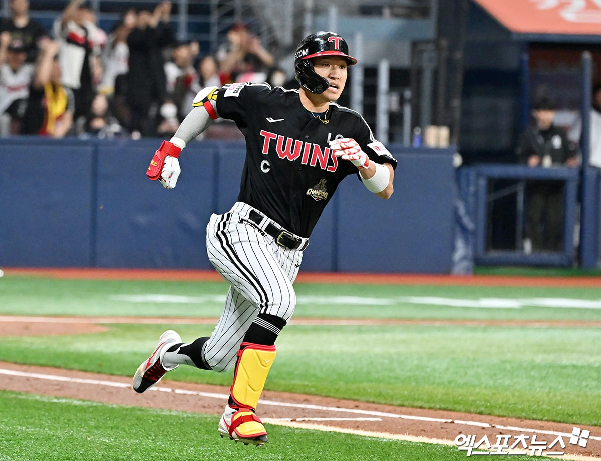 (엑스포츠뉴스 고척, 김한준 기자) 5일 오후 서울 구로구 고척스카이돔에서 열린 '2026 신한 SOL Bank KBO리그' LG 트윈스와 키움 히어로즈의 경기, 4회초 무사 1루 LG 박해민이 2루타를 날리고 있다.