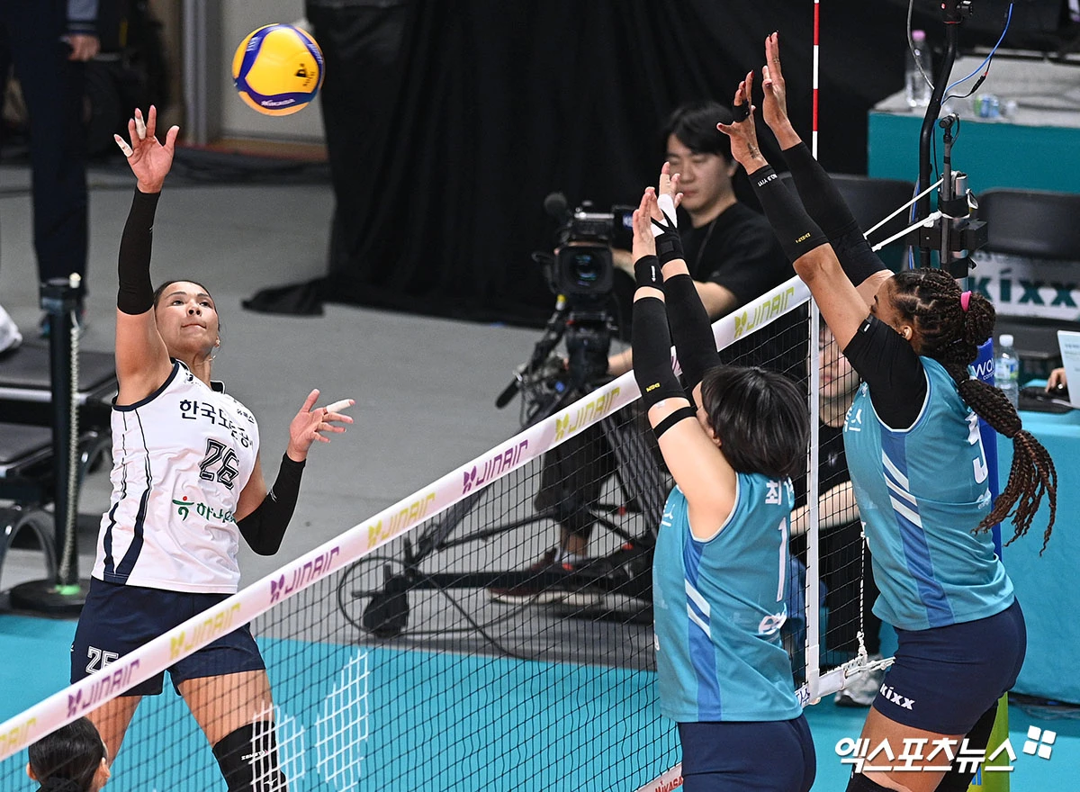 도로공사는 2세트 시작부터 실바의 퀵오픈과 블로킹에 연달아 실점해 0-2로 끌려갔다.