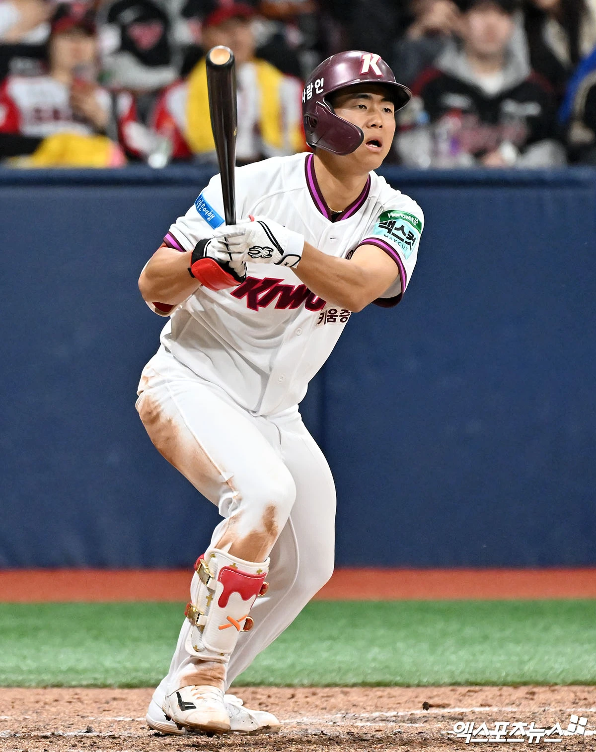 (엑스포츠뉴스 고척, 김한준 기자) 5일 오후 서울 구로구 고척스카이돔에서 열린 '2026 신한 SOL Bank KBO리그' LG 트윈스와 키움 히어로즈의 경기, 7회말 1사 1루 키움 어준서가 우전안타를 날리고 있다.