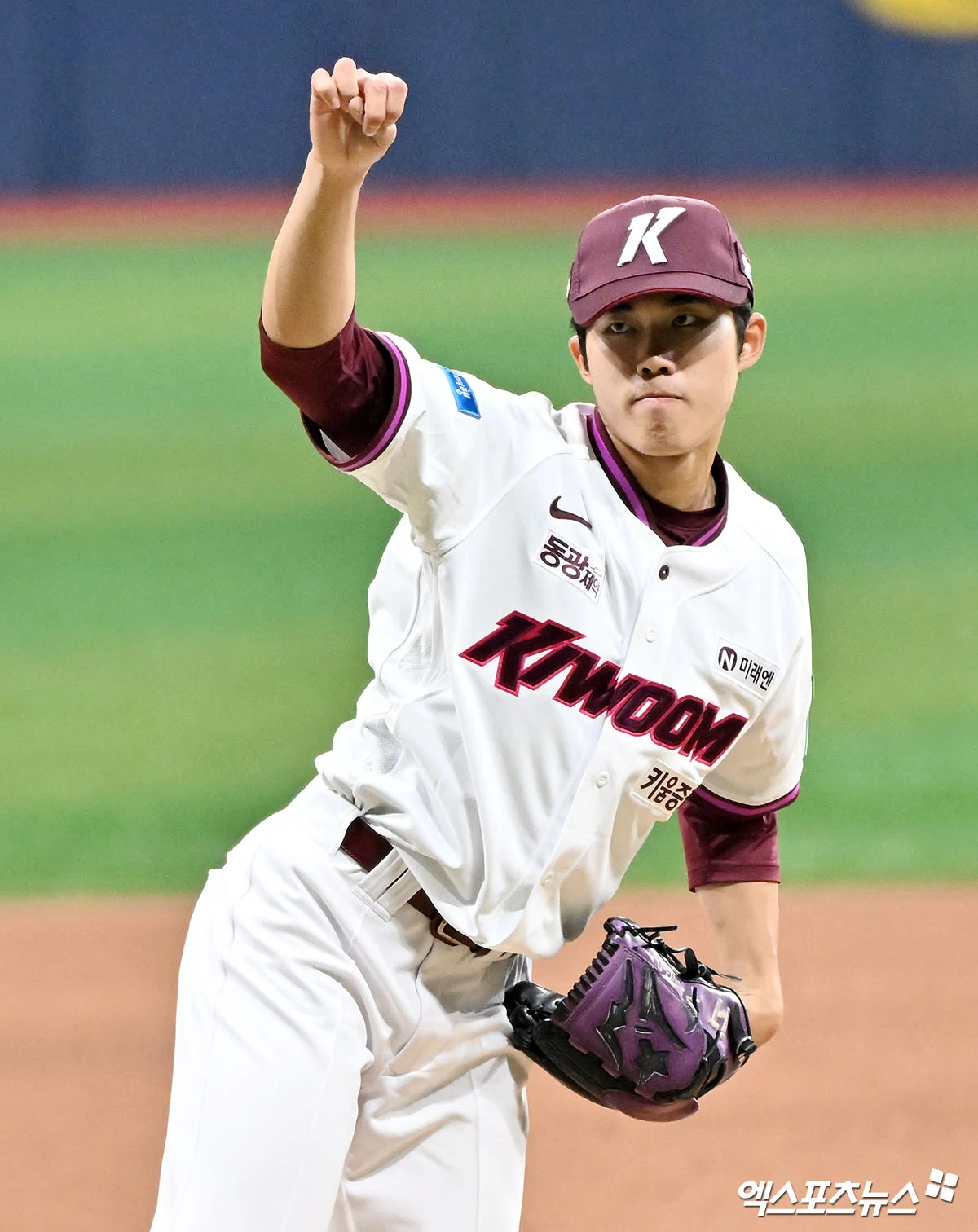 (엑스포츠뉴스 고척, 김한준 기자) 5일 오후 서울 구로구 고척스카이돔에서 열린 '2026 신한 SOL Bank KBO리그' LG 트윈스와 키움 히어로즈의 경기, 9회초 키움 정다훈이 공을 힘차게 던지고 있다.