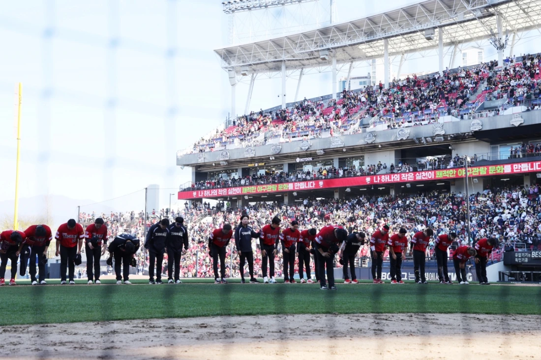 KIA는 홈 개막전이었던 3일 NC전에 이어 4일, 5일 경기까지 입장권 2만5000장을 모두 판매하며 3경기 연속 만원관중을 달성했다. 이범호 감독은 "홈 개막 3연전 내내 만원 관중의 응원이 큰 힘이 됐다. 진심으로 감사드린다"며 고마움을 표현했다.