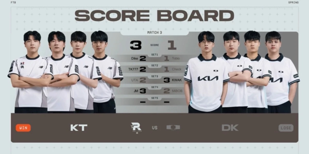 (엑스포츠뉴스 이정범 기자) '2026 FTB 스프링' KT가 디플러스 기아를 제압하고 패자조 2라운드로 향했다.
