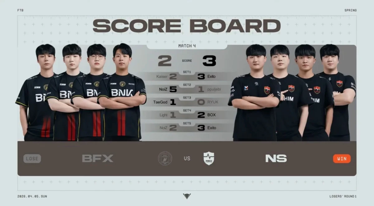 2일 차에는 패자조 1라운드 경기가 진행됐다. 오늘 두 번째 경기에 나선 팀은 BNK 피어엑스(BFX)와 농심 레드포스(NS). BNK 피어엑스는 앞선 DN수퍼스전 패배로 인해 패자조에 내려왔고, 농심 레드포스는 ‘FSL 스프링' 성적에 따라 패자조부터 시작했다.
