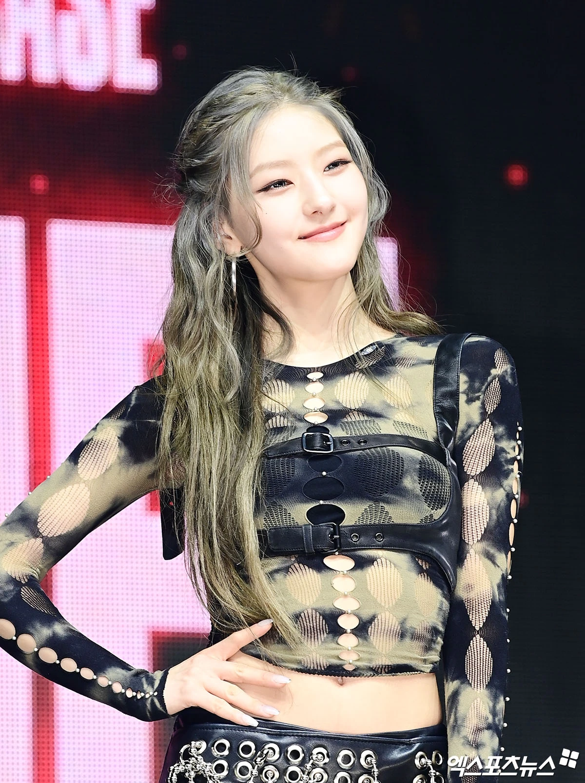 이날 쇼케이스에 참석한 키스오브라이프 하늘이 포토타임을 갖고 있다.
