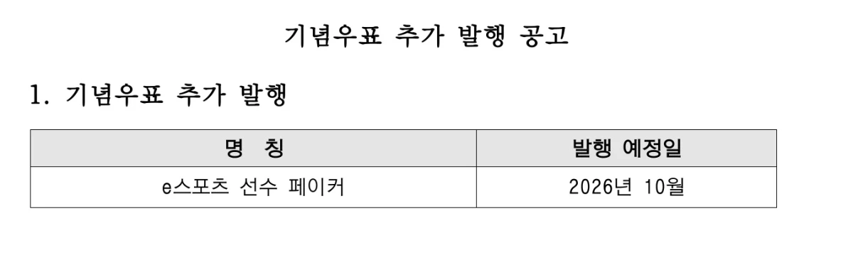 우정사업본부는 관련 규정에 따라 이번 발행 건에 대한 이의신청을 오는 25일까지 접수할 계획이다. 기념우표 발행이 확정됨에 따라 팬들의 이목을 집중시키는 것은 물론, e스포츠의 대중적 위상을 확인하는 계기가 될 것으로 보인다.