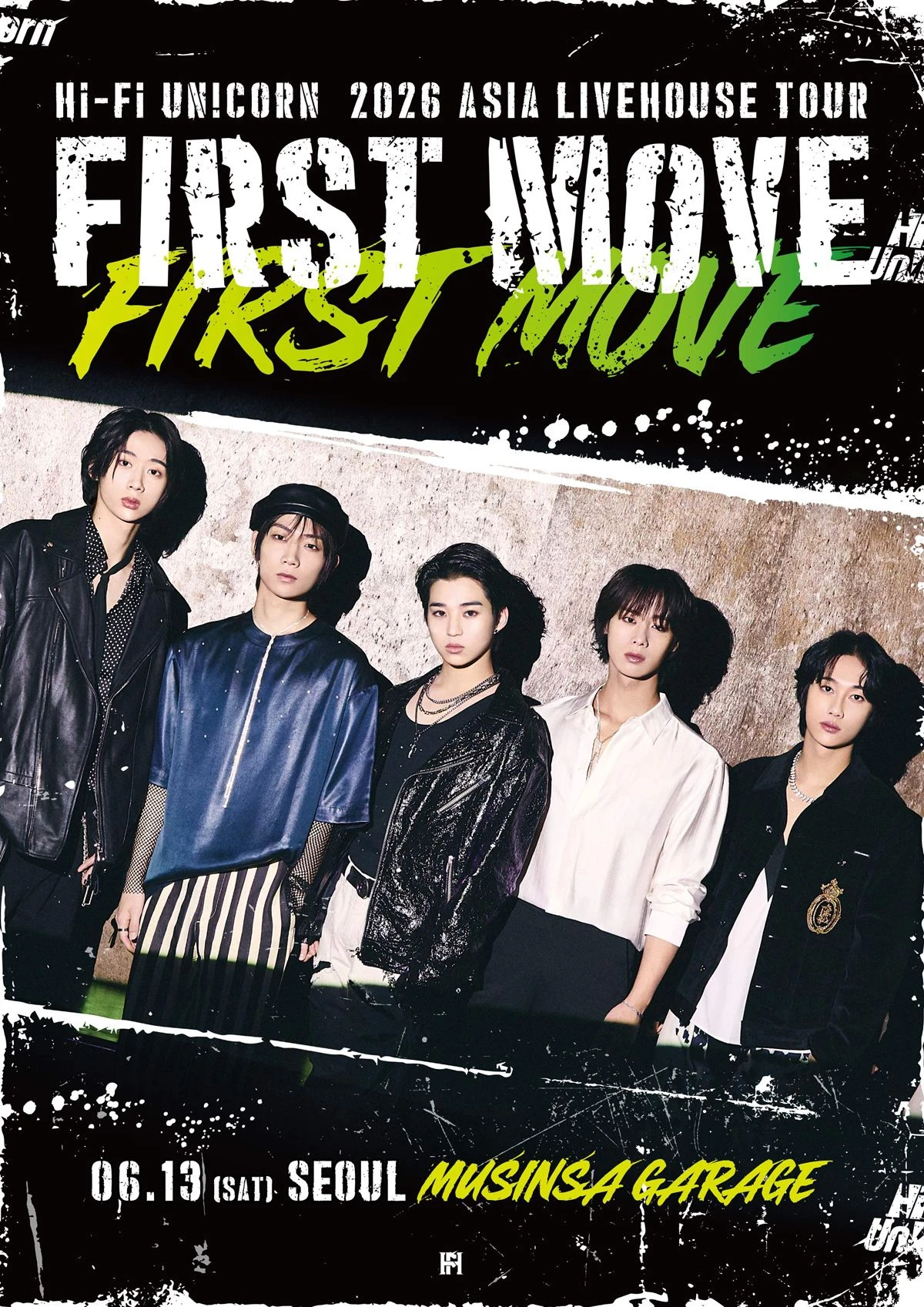 하이파이유니콘은 오는 6월 13일 서울 무신사 개러지에서 Hi-Fi Un!corn 2026 ASIA LIVEHOUSE TOUR ‘FIRST MOVE’ IN SEOUL(하이파이유니콘 2026 아시아 라이브하우스 투어 ‘퍼스트 무브’ 인 서울)을 개최하고 팬들과 만난다.