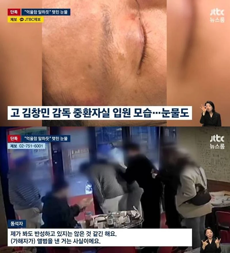 6일 방송된 JTBC '뉴스룸'에서는 사건 당일 응급실에서 중환자실로 이송된 고 김창민 감독의 사진을 공개했다.
