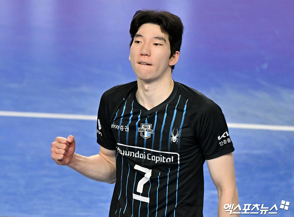 현대캐피탈 허수봉이 기뻐하고 있다.