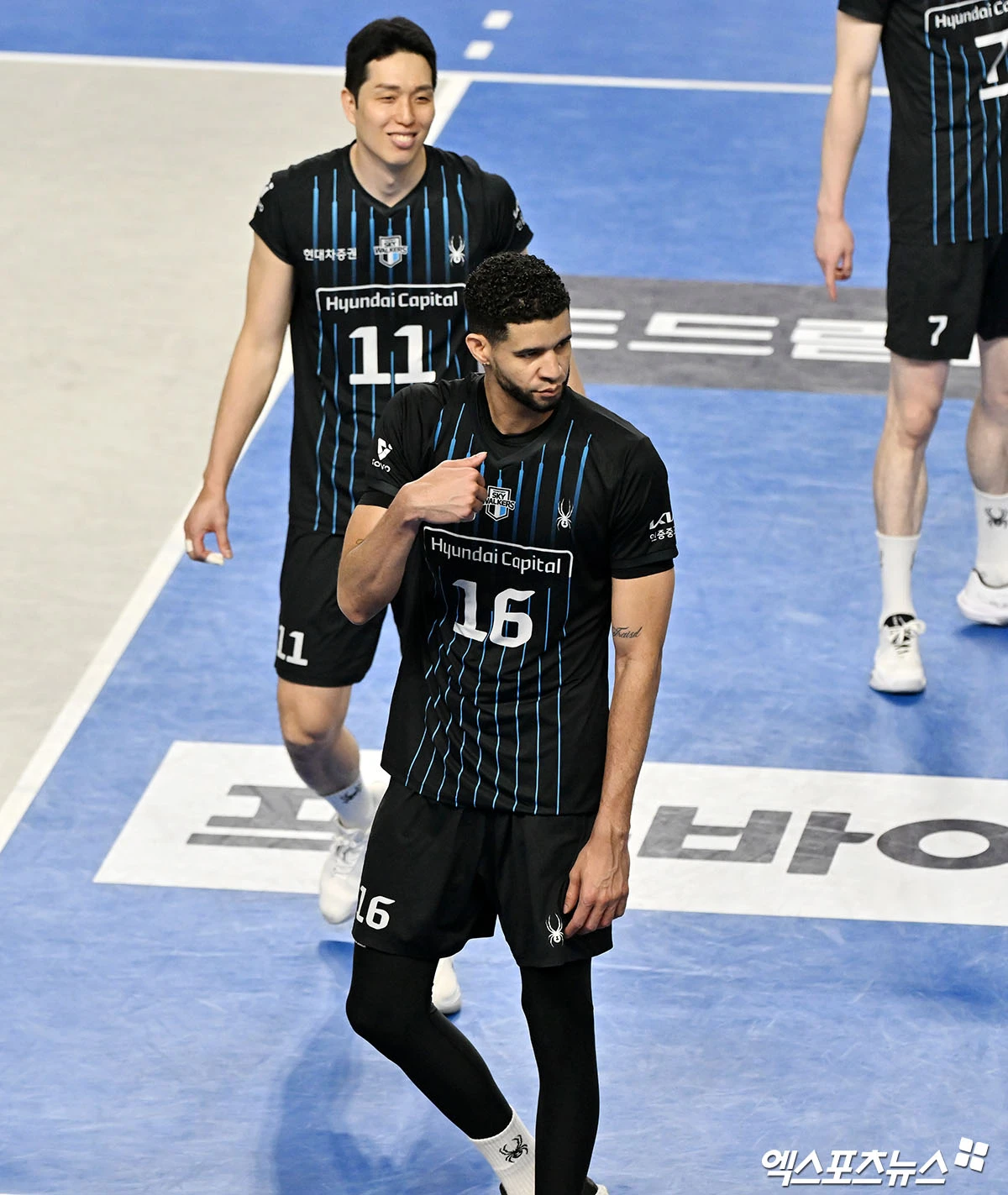 현대캐피탈 레오가 기뻐하고 있다.