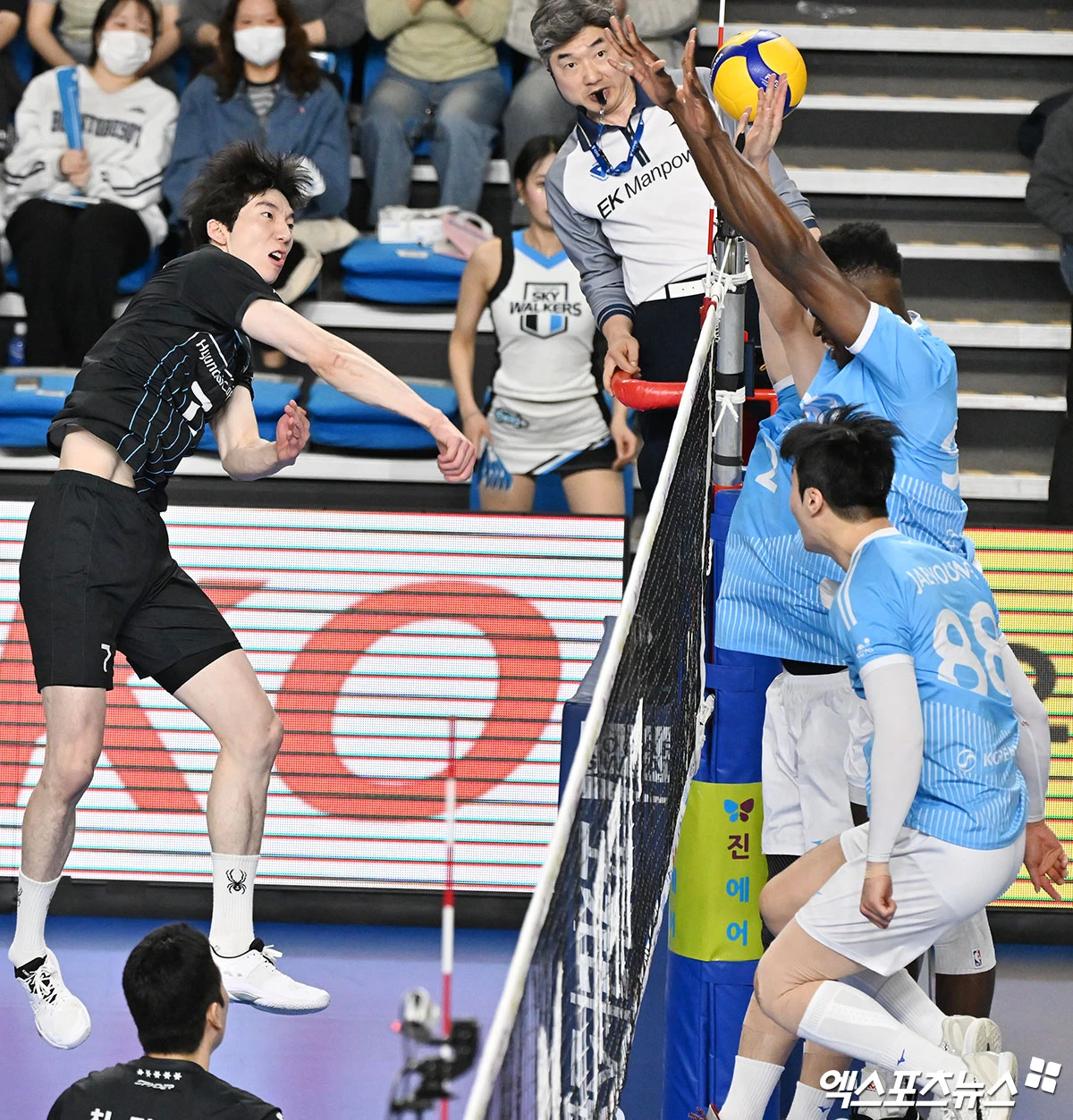 현대캐피탈 허수봉이 공격을 시도하고 있다.