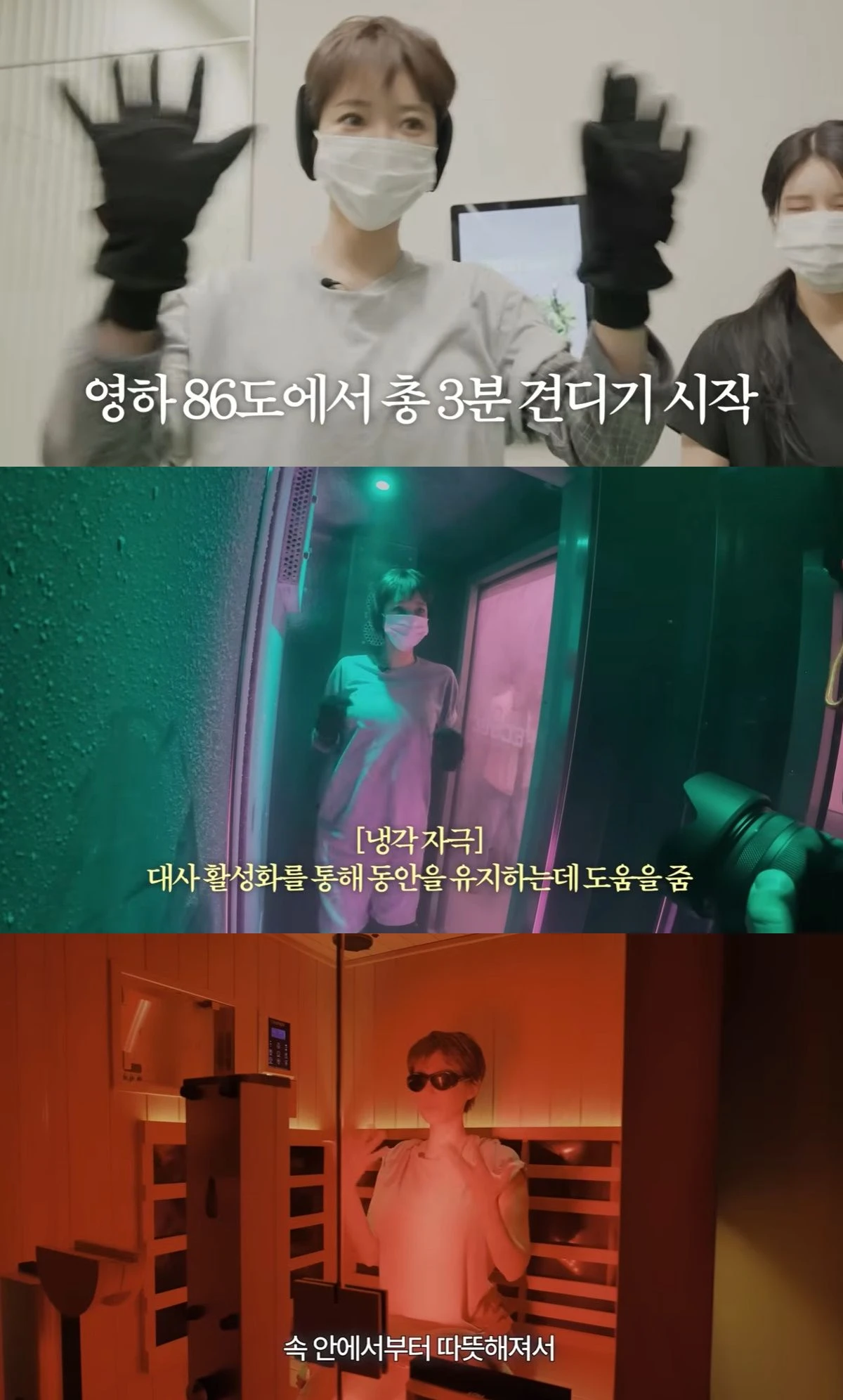 이곳을 일주일에 2, 3번 정도 방문한다는 고준희는 영하 86도의 냉각 사우나에 들어가 바삐 움직였다. 그는 "이게 염증을 없애주고, 세포 재생을 도와주는 것"이라고 설명했다.