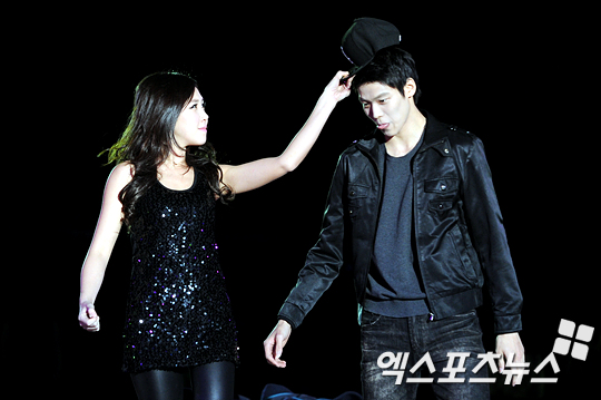 [엑스포츠뉴스=잠실실내, 권혁재 기자] 29일 오후 서울 잠실 실내체육관에서 열린 '2011-2012 KB국민카드 프로농구 올스타전'에서 SK 김선형과 엄윤주 치어리더가 멋진 무대를 선보이고 있다.