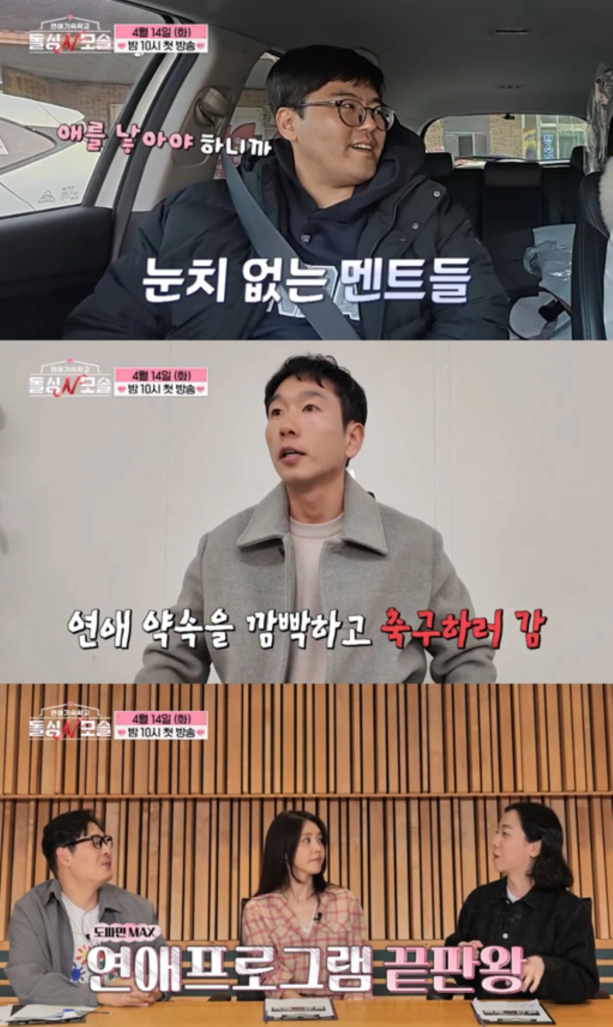 이어 차 안에서 여성 출연자가 "취미 있으세요?"라고 묻자 "있습니다, 있어요"라고만 답하고 침묵하는 남성의 모습도 공개된다. 이를 지켜보던 김풍이 "있느냐고 물어본 게 아니라 어떤 취미인지 말씀해 주셔야죠"라고 황당함을 터뜨리는 장면은 모솔남들의 '연애 생초보' 면모를 유감없이 드러낸다.