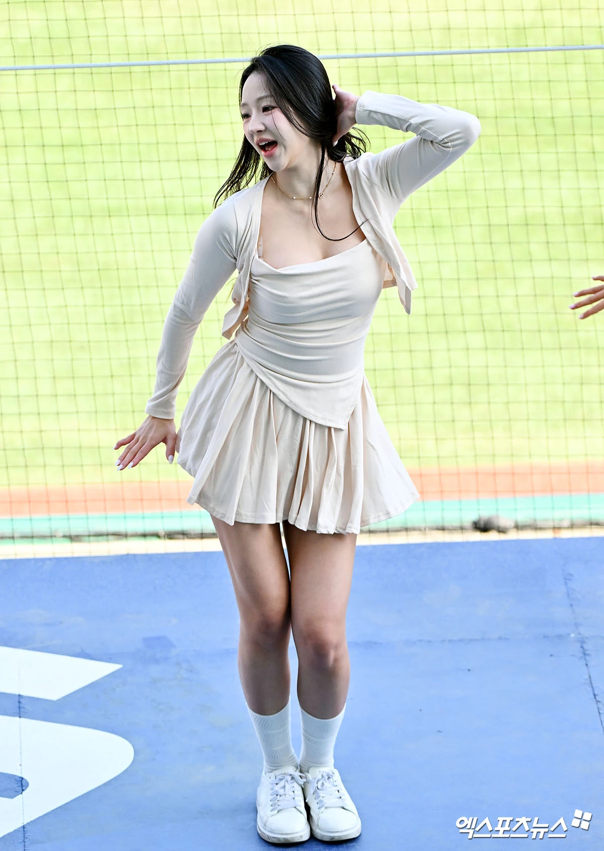 (엑스포츠뉴스 인천, 김한준 기자) 7일 오후 인천SSG랜더스필드에서 열리는 '2026 신한 SOL Bank KBO리그' 한화 이글스와 SSG 랜더스의 경기, SSG 이연진 치어리더가 리허설에 임하고 있다.