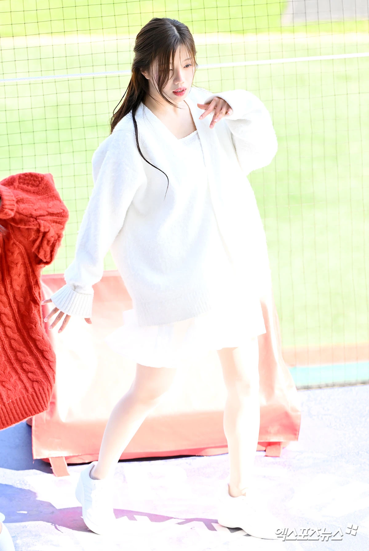 (엑스포츠뉴스 인천, 김한준 기자) 7일 오후 인천SSG랜더스필드에서 열리는 '2026 신한 SOL Bank KBO리그' 한화 이글스와 SSG 랜더스의 경기, SSG 강지은 치어리더가 리허설에 임하고 있다.